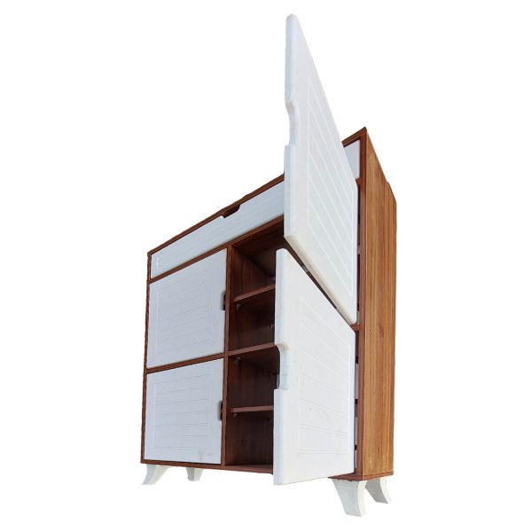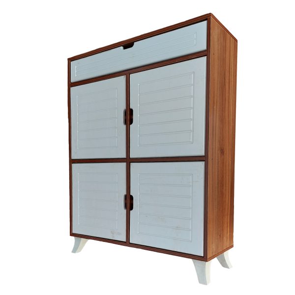این جاکفشی چهار درب بوده که هر درب کابین جداگانه دارد. در هر کابین دو طبقه وجود دارد که مجموعا ۸ طبقه در چهار ردیف جای قرار گرفتن کفش های شما میشود. همچنین کشوی بالایی محصول موردی مناسب جهت قرار دادن وسایل کوچک و ضروری میباشد.