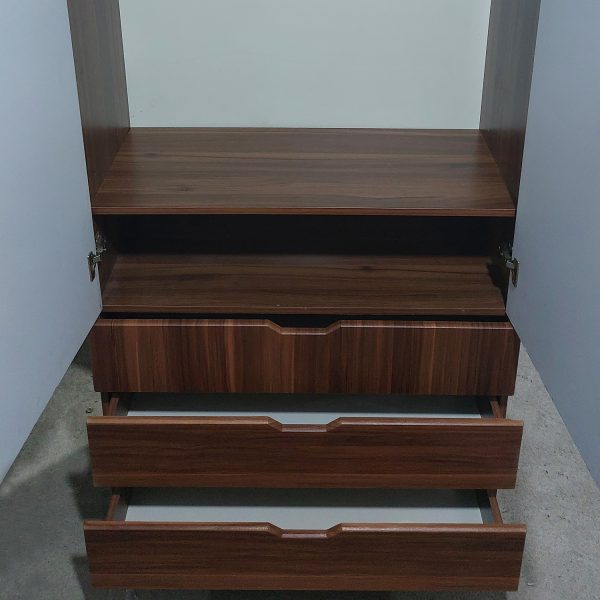 کمد مدل سازیما یک کمد جادار و زیبا مخصوص هر خانه ای میباشد. این کمد دارای سه طبقه کشو در قسمت پایینی و فضای رگال و یک طبقه در قسمت بالایی میباشد. بدنه این کمد از جنس ملامینه بوده و درب های آن ام دی اف روکش شده میباشند. در ساخت این محصول از متریال درجه یک استفاده شده است که خیال شما را بابت یک محصول بادوام و دارای طول عمر طولانی راحت میکند.