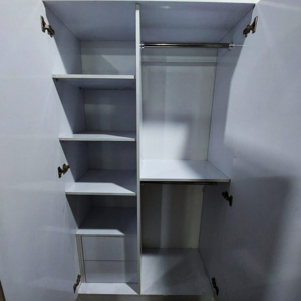 کمد دو درب مدل سما یک کمد زیبا و جادار برای هر خانه ای میباشد. درب های این کمد از جنس ام دی اف روکش شده بوده و کمد دارای دو قسمت مجزا میباشد. در یک قسمت دو طبقه رگال جهت قراردادن هر نوع لباسی تعبیه گردیده است و در سمتی دیگر دارای سه طبقه با ارتفاع مناسب و دو کشوی داخلی جهت قرارگیری وسایل میباشد.